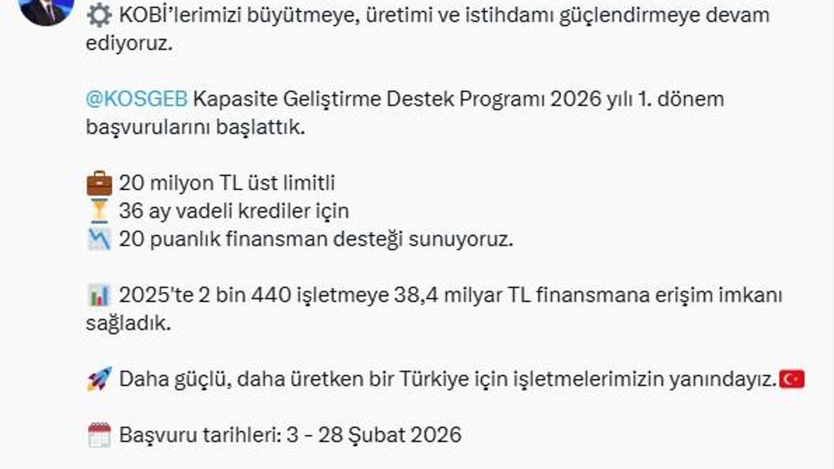 - KOSGEB 2026'da 53.000 KOBİ'ye destek verecek